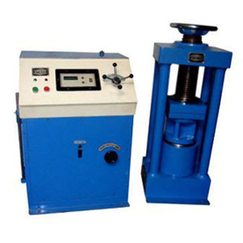 Compression Testing Equipment Electrically Cum Manually (Hand) Operated. The loads are measured on Bourdon tube type load gauges which are calibrated against certified proving rings. The load gauges are fitted with a maximum load pointer. In the Electrically Operated Pumping Units, load gauges are fitted with micro switches to switch-off the motor when the load approaches the maximum capacity of the gauge, avoiding any over loading. Relays are incorporated so that the motor does not restart on its own after a power breakdown. The electrically operated pumping units are provided with a control knob to adjust the pace rate which can be effectively controlled by an experienced operator during the course of testing, by observing the progress of the load gauge reading. The electrically operated pumping units are also fitted with hand operated pump.